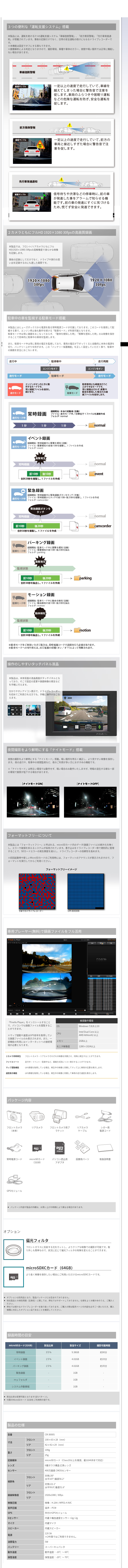 前後高画質録画、運転支援機能など搭載