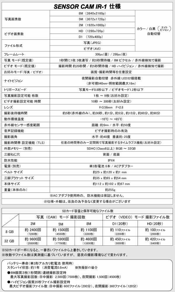 ・SDカード及び、乾電池は別途市販品をお買い求め下さい。