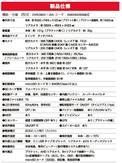 | 詳細カテゴリ | 360度ドライブレコーダー |