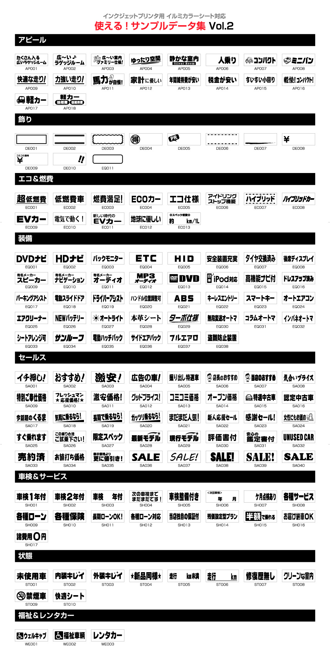 ホーム > 売り場・販促系コーナー > ポップ紙/展示車装飾 > ポップ蛍光紙 > インクジェット用イルミカラーシート > インクジェットプリンタ用イルミカラーシート対応 使えるサンプルCD-ROM vol.2